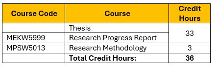 The Master of Science candidate is supervised by an academic staff (or a panel of supervisors) from the faculty. The directed research work will focus on a particular subject that introduces candidates to the processes by which new knowledge is developed or/ and applied accordingly. The specific topic of investigation will be agreed upon by the supervisor (or panel of supervisors) and the candidate. The academic progress of a candidate is assessed through a research. Progress Report submitted at the end of each semester. The degree is awarded based on an oral examination (viva- voce) of the thesis submitted by the candidate on completion of the study. Candidates intending to study by research may submit their application for admission throughout the year.